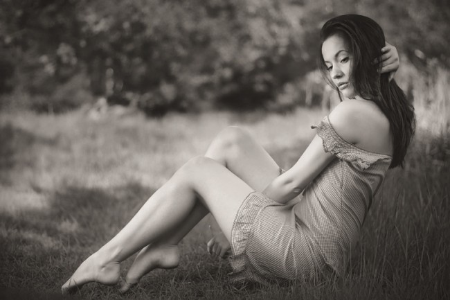 Przepiękny b&w kadr! Podoba mi sie ułożenie nóg modelki,tak delikatnie dotykają ziemi niczym tancerka :)