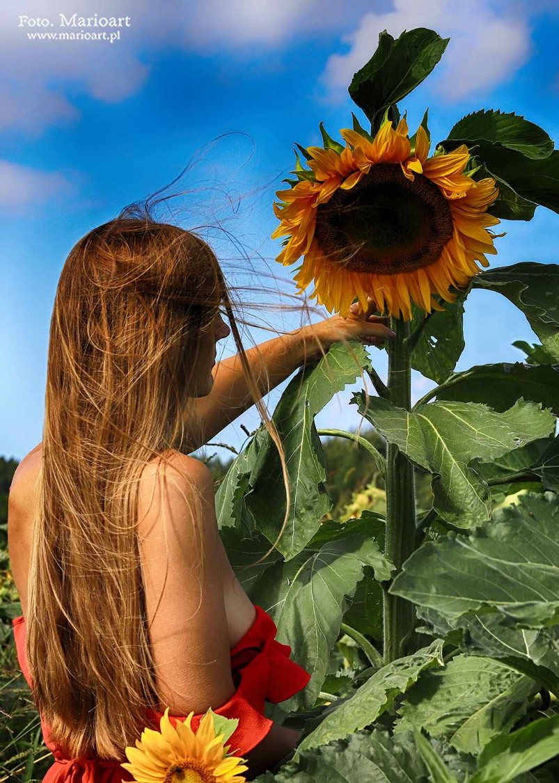 Otoczona słoneczkami.