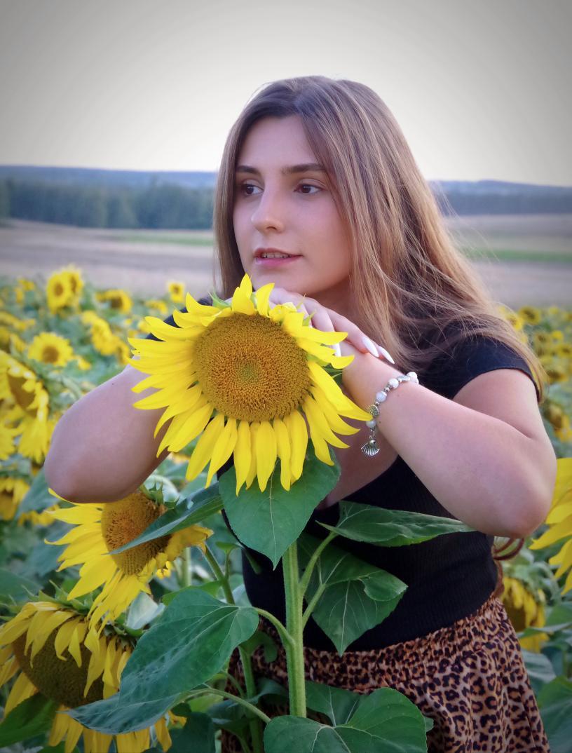 Zdjęcie portretowe w polu słoneczników. Trzeba pokorzystać jeszcze z letnich klimatów! :)